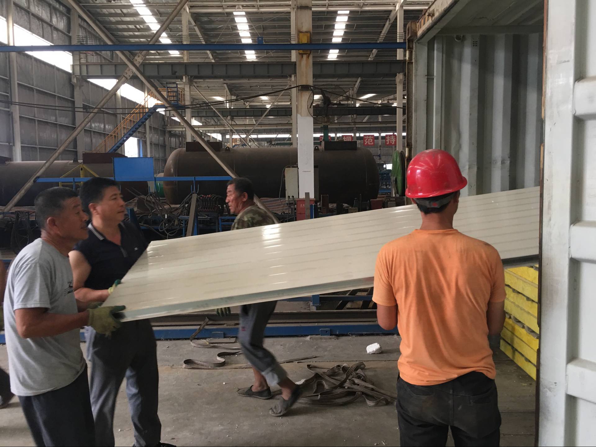 車間鋼結(jié)構(gòu)房屋保溫彩鋼板裝箱現(xiàn)場(chǎng)