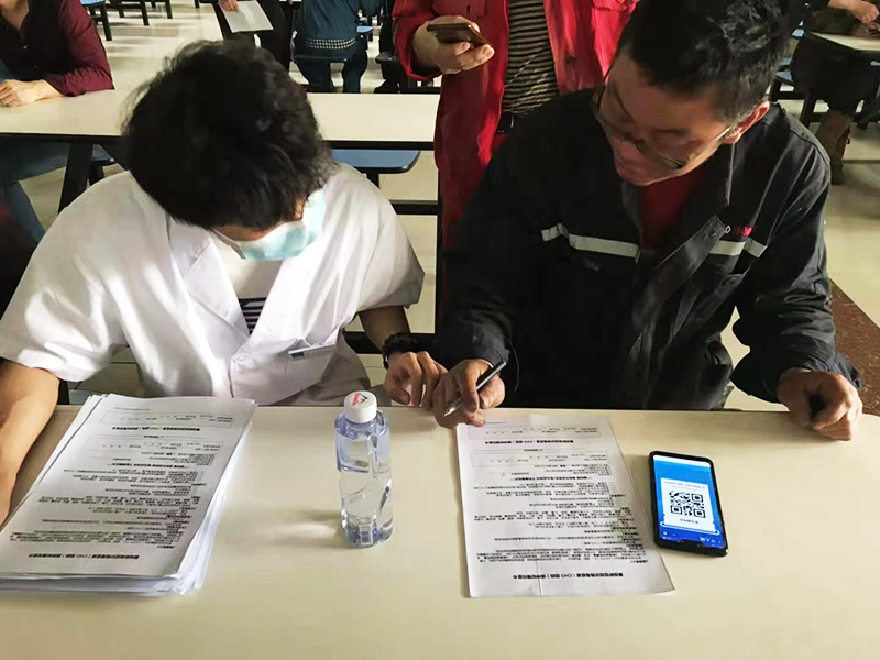 醫(yī)務(wù)人員仔細回答員工的問題